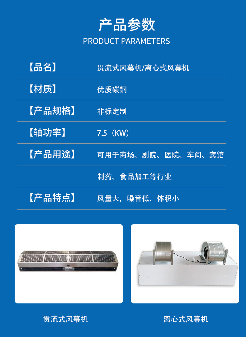 电加热风幕机产生高速的气流,将室内外分成两个独立温度区域创造舒适的室内环境,保持室内空调及净化空气的效果,节省电能的同时,并令空气循环,有效隔离灰尘、烟气、臭气 、昆虫和微生物等。防止冷(暖)气外流,节省用电持续形成的空气门,能有效防止冷(暖)气外泄,节省用电,将室内外分成两个独立温度区域,在空调机长时间运转时,辅助循环调节温度,达到节约能源改善环境的目的。防尘、防虫效果风幕机产生高速气流,形成一道保护门,能有效阻挡室外灰尘及飞虫侵入,保持室内清洁。防烟及有害气体效果风幕机的空气循环系统能令室内各角落强力阻隔油烟辛辣味的飘散及工业废气、汽车排气等有害气体进入室内。空气循环效果在体育馆、电影院、娱乐场所等因空间大而产生空调能量分配不均时,风幕机的空气循环系统功能达到室内温度均衡。